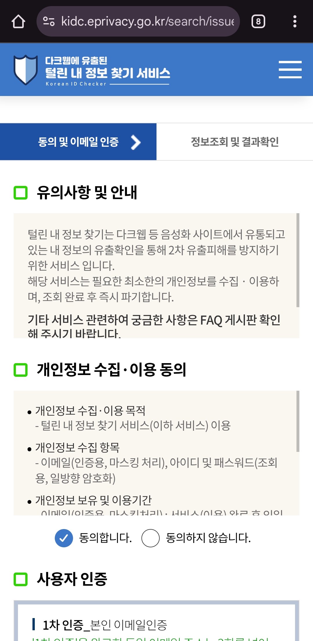 1️⃣ 털린 내 정보 찾기 사이트 접속