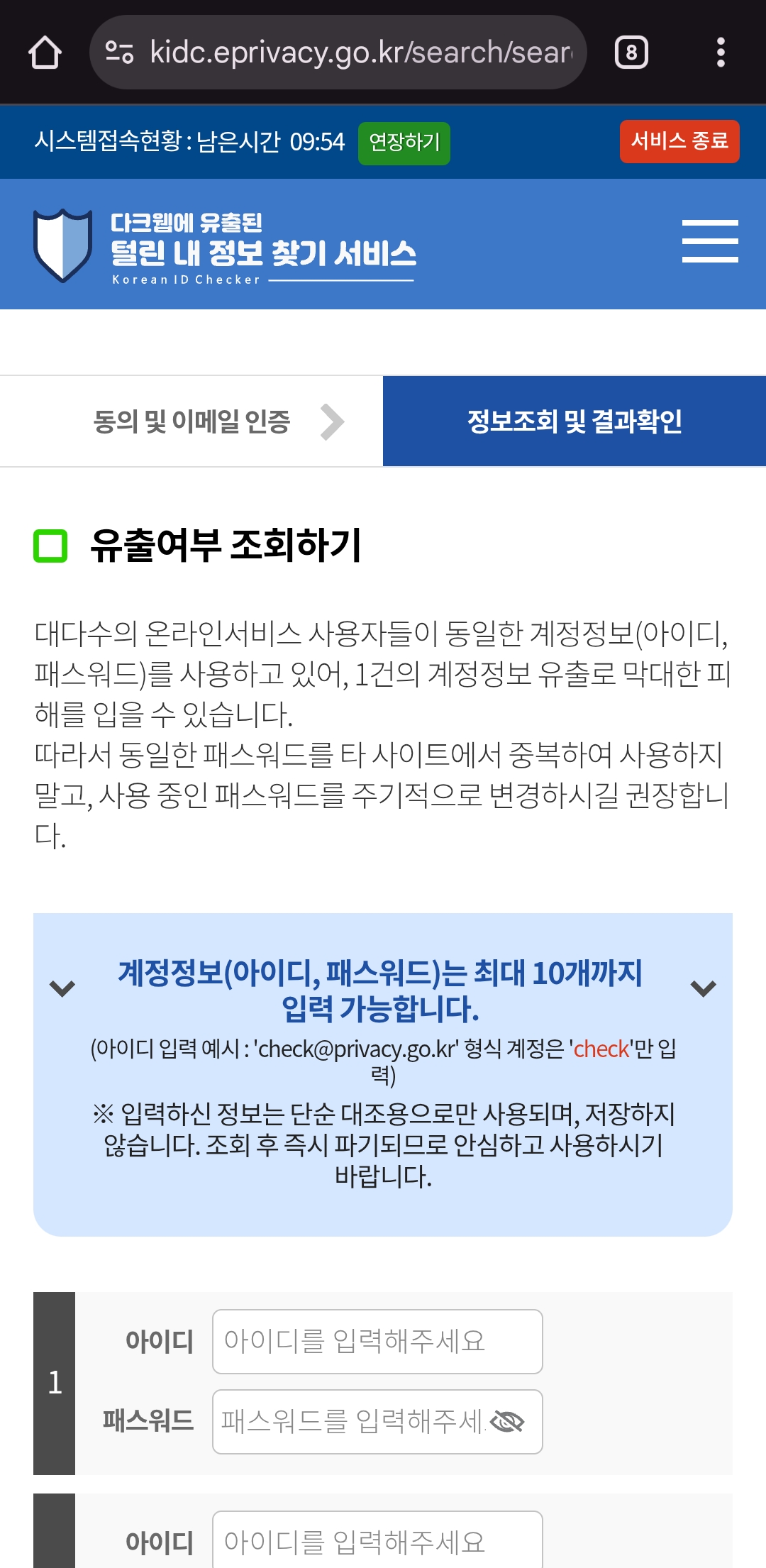 4️⃣ 아이디·비밀번호 유출 여부 조회
